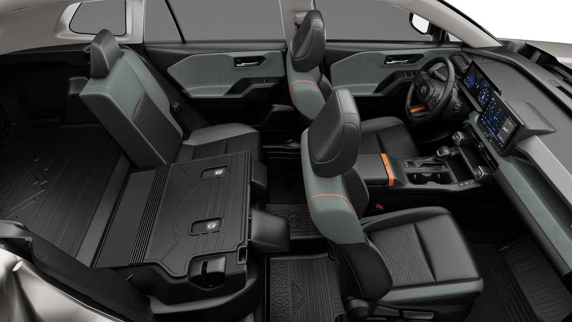 - 60/40 split reclining fold-flat rear seat with center armrest and cup holders