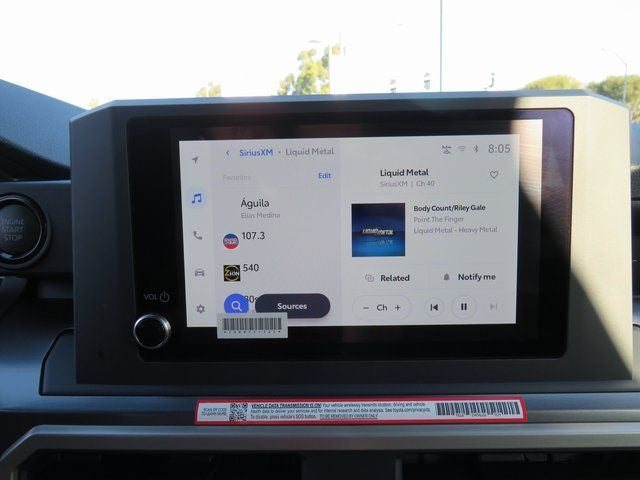 - 8-in. Toyota Audio Multimedia display with 6-speaker audio system, wireless Apple CarPlay® & Android Auto™ compatibility, SiriusXM® 3-month trial subscription. See toyota.com/connected-services for details.