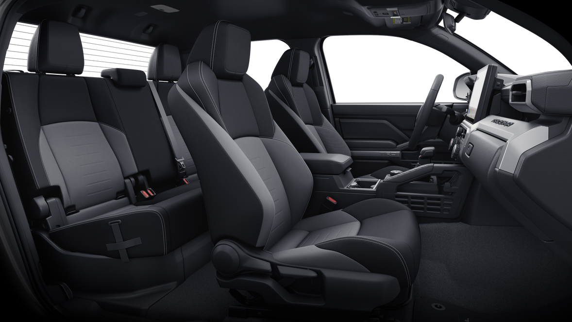 - Fabric-trimmed seats; 6-way manually adjustable driver and front passenger seats with 2-way power-adjustable lumbar support on driver's seat only