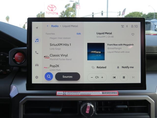 - 8-in. Toyota Audio Multimedia display with 6-speaker audio system, wireless Apple CarPlay® & Android Auto™ compatibility, SiriusXM® 3-month trial subscription. See toyota.com/connected-services for details.