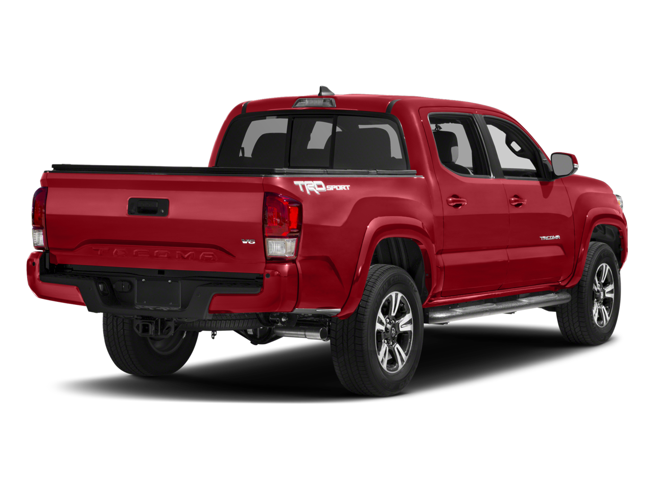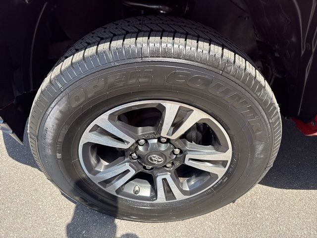 This Tacoma's rugged good looks are enhanced by the exterior package, which includes stylish black oval tube steps, an exhaust tip, and a bed extender for added versatility. The 17-inch machined alloy wheels and bold red exterior color give the TRD Sport an undeniably sporty and adventurous presence.